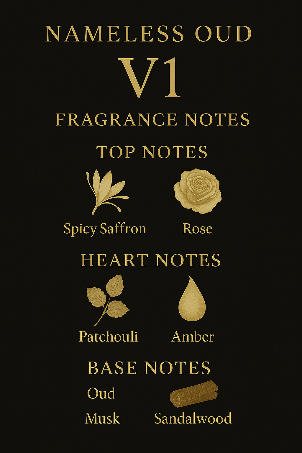 V1 is a bold and luxurious fragrance that makes a statement. It starts with a fresh and spicy kick, then moves into a warm floral heart touched with resins and soft woods. The base is deep and lasting with oud, musk, and amber giving it a smooth and sophisticated finish. It is the kind of scent that stands out, elegant and confident, perfect for moments that matter.